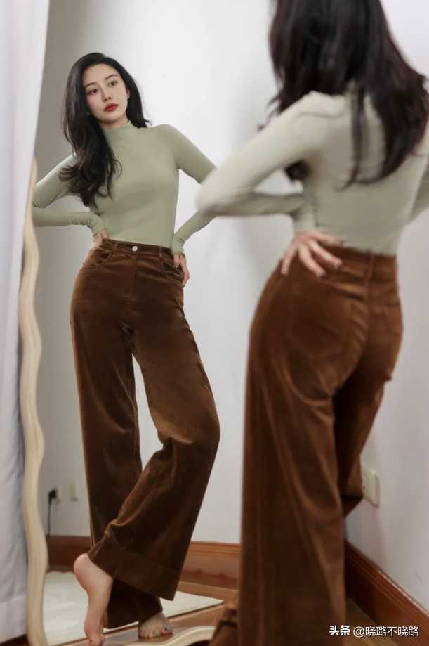 第二点就是像毛呢裤或者是毛线裤这样自带重锤感的材质推荐,对于其他软糯型的材质而言这一类材质优势就是垂感重,所以在整体的视觉衬托上拉伸感十足,所衬托出来的气质也更偏优雅。
